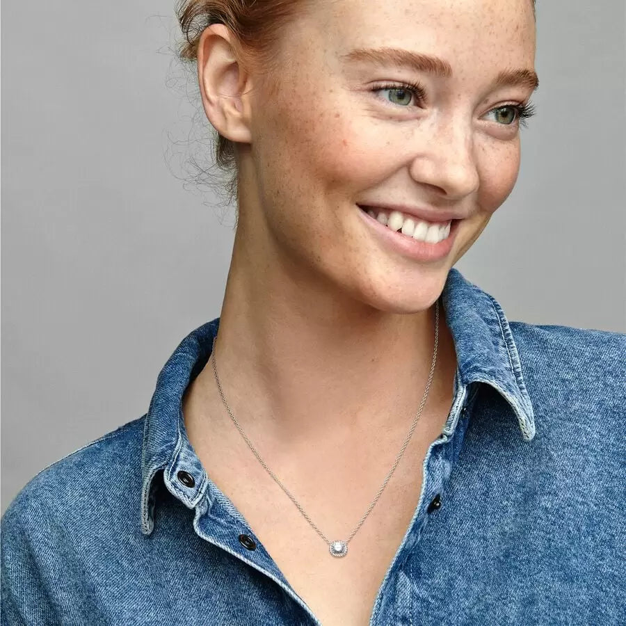 Elegante y sofisticado, este brillante collar Pandora evoca el glamour de épocas pasadas. Un diseño clásico en Plata de Ley 925, adornado con un generoso colgante con circonitas cúbicas de talla brillante enmarcadas por centelleantes piedras. Naturalmente elegante, se ajusta a tres longitudes diferentes y combina a la perfección con conjuntos de día y de noche. Junto con los pendientes de botón Pandora a juego, es el regalo de joyería perfecto.