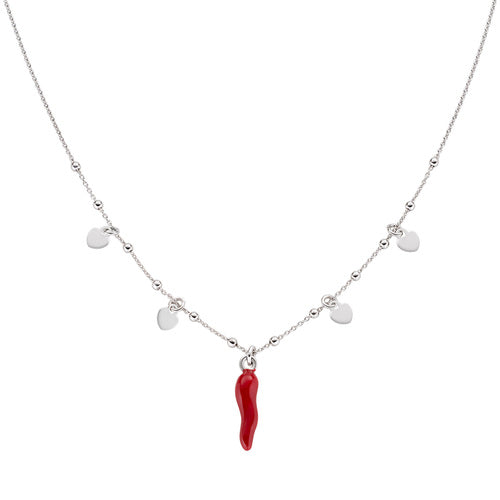 Collana in Argento 925 e smalto rosso - Rodio - Lunghezza 40 cm + 5 cm - corredato da shopper, scatola e garanzia